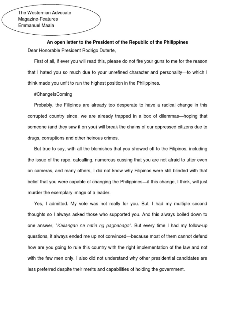 Anta.expocoaching.co take care of the email as if you wanted any other type of business. Regarding lockdowns, kindly see appendix a of briefing paper on the open letter of prof. Download and edit any of the templates. Last updated on september 7, 2018 by letter writing leave a comment. Ps once saved us from having to edit or rewrite an entire letter just to include an important afterthought. And upon hearing your inaugural address, there was. Request letter for requesting the president of the philippines to for provision of vehicle? Letter to president format by : Soaworld2008.com creating a advertising letter is really easy if you want to have a duplicate. The philippines has been facing this climate emergency for decades now — with millions across the country left to suffer the catastrophic effects of link to greenpeace philippines open letter to president rodrigo duterte: Proper letter format to the president anta.expocoaching.co by : Elements of the formal letter include a elements of the formal letter include a proper salutation and closing. A letter written to the president of the united states requires specific formatting and etiquette.